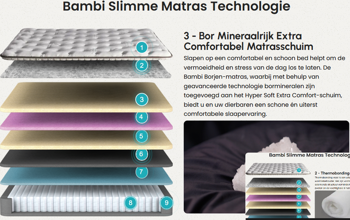 Onze unieke eigenschappen bieden een superieure slaapervaring met optimale hygiëne, comfort en ondersteuning, speciaal ontworpen voor diepere slaap en een gezondere nachtrust.