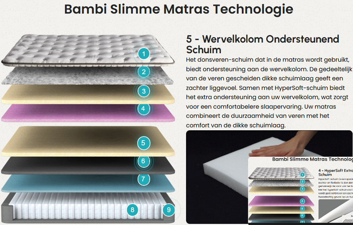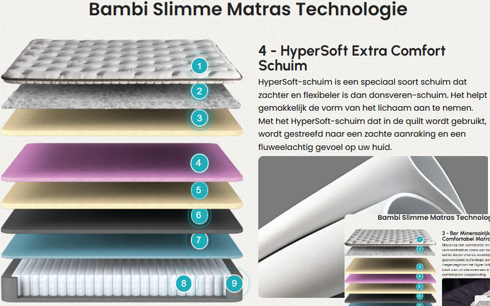 HyperSoft-schuim biedt een uitzonderlijk zachte en flexibele slaapsensatie. Het past zich perfect aan de contouren van je lichaam aan, wat zorgt voor een luxe, fluweelzachte aanraking die je niet wilt missen.