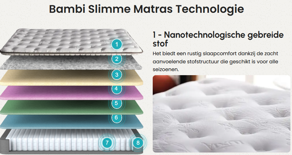 Kies voor ongeëvenaard comfort en ondersteuning met unieke technologieën die de slaapervaring revolutioneren. Onze combinatie van hoogwaardige materialen en innovatief ontwerp biedt de beste nachtrust van de markt.